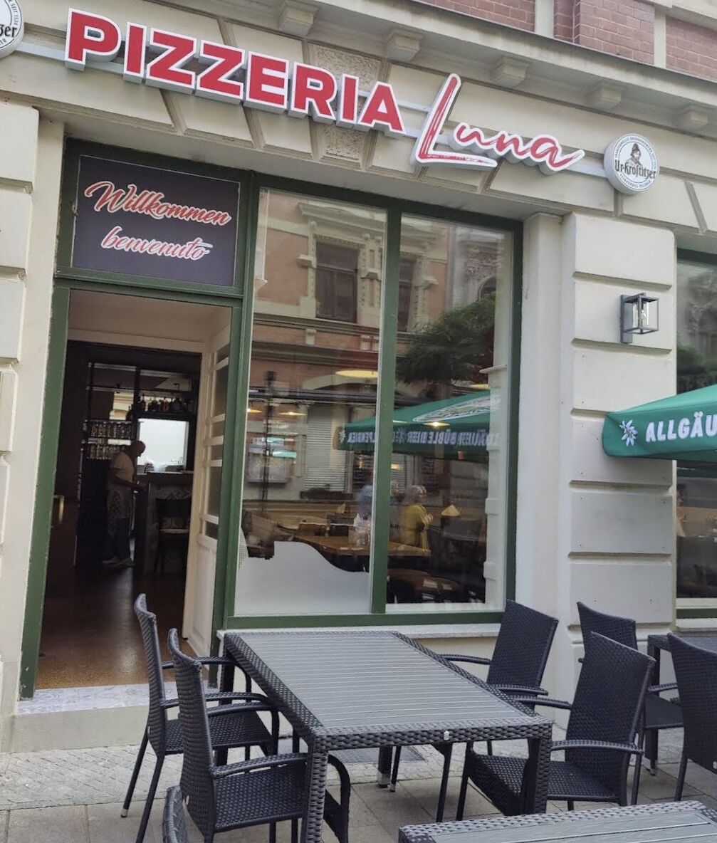Reserve onlineHerzlich willkommen in Pizzeria Luna in Halle! Wir freuen uns auf Ihren Besuch. Lassen Sie sich von unserer köstlichen Auswahl an italienischen Spezialitäten verzaubern. Unser freundliches Personal serviert Ihnen die besten Gerichte. Genießen Sie unsere meisterhaft zubereiteten Speisen, die für jeden Geschmack etwas bieten. Verwöhnen Sie sich mit unseren leckeren Desserts und Tiramisu. Wir gehen gerne auf Ihre individuellen Ernährungswünsche ein und bieten Ihnen eine Auswahl an vegetarischen Gerichten. Erfrischende Getränke stehen ebenfalls für Sie bereit. Genießen Sie in ruhiger, entspannter Atmosphäre ein schmackhaftes Mittag- oder Abendessen.